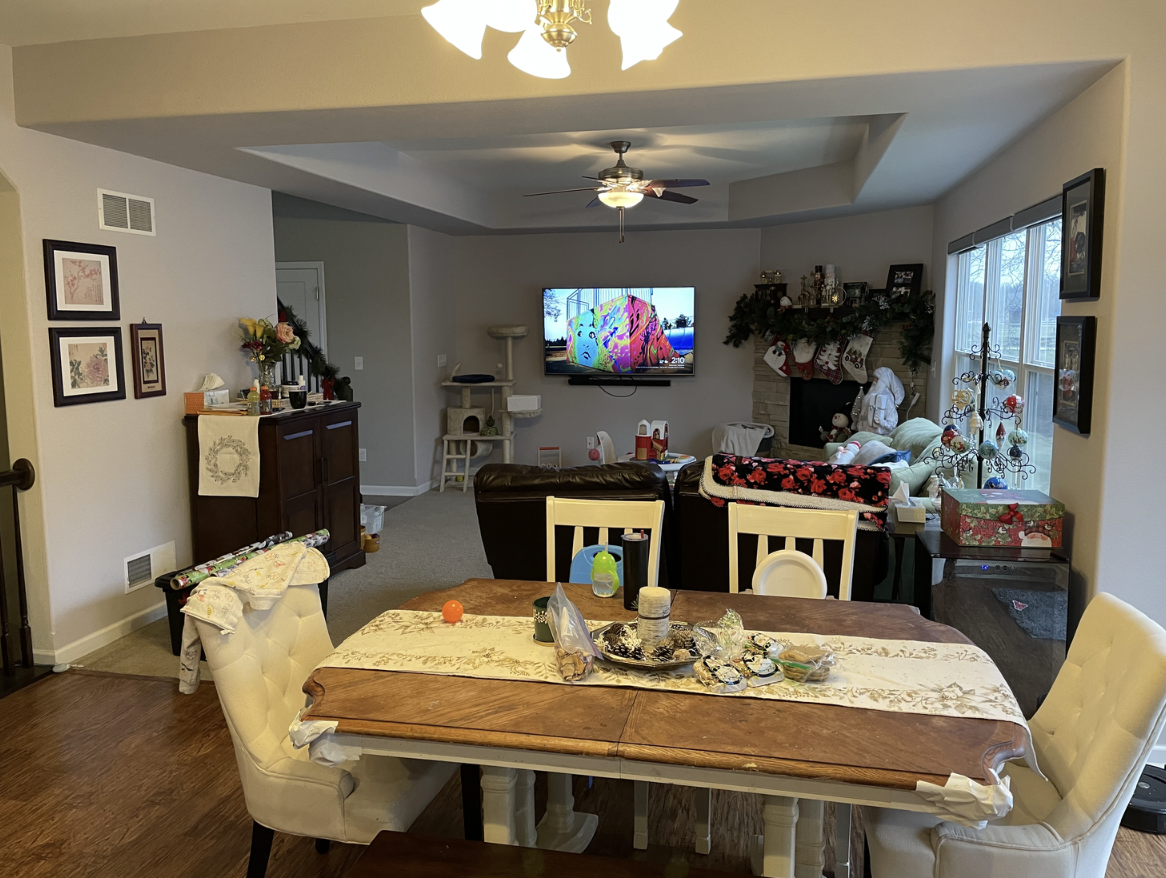 When I walked into the Lincolnshire house for the first time last year I was excited to tackle their space because I knew it was going to make such an impact for them! I also love a challenge!! And although it's hard to tell through the pictures, the undertones of the gray paint leaned purple. She was drawn to a much more modern look, and also wanted a lux feeling in the rooms. And then lastly, she has a small child at home (read: make child-friendly selections!), and enjoys having people over and entertaining!